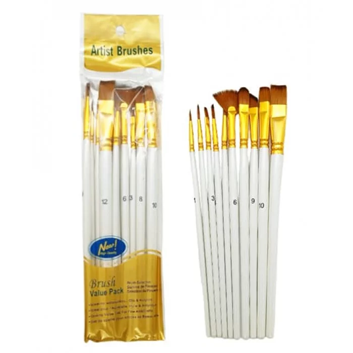 Кисти набор 10 шт. Синтетика CZ-248 Круглые (№1, 2, 4, 5) и плоские (№3, 6, 8, 9, 10, 12) в пакете (1/500) 327307