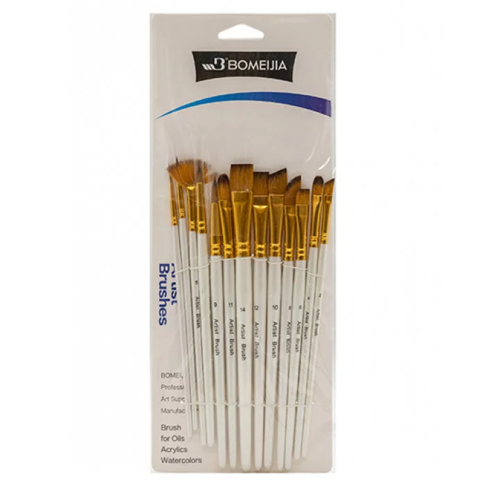 Кисти набор 13 шт. Синтетика CK-157 Круглые (№1, 3, 7, 9) и Плоские (№2, 4, 5, 6, 8, 10, 11, 12, 14) белая ручка, в ПВХ-пакете 320250