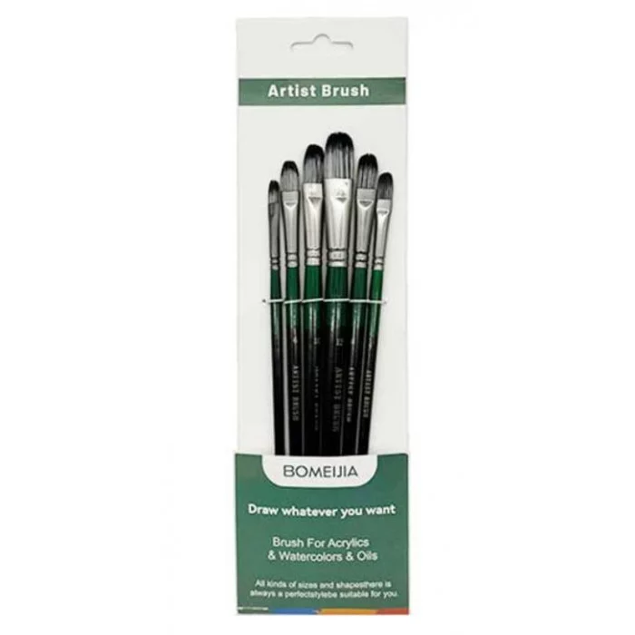 Кисти набор 6 шт. Синтетика DH-99 Овальные (№2,4,6,8,10,12) черно-зеленая ручка, в ПВХ-пакете 331979