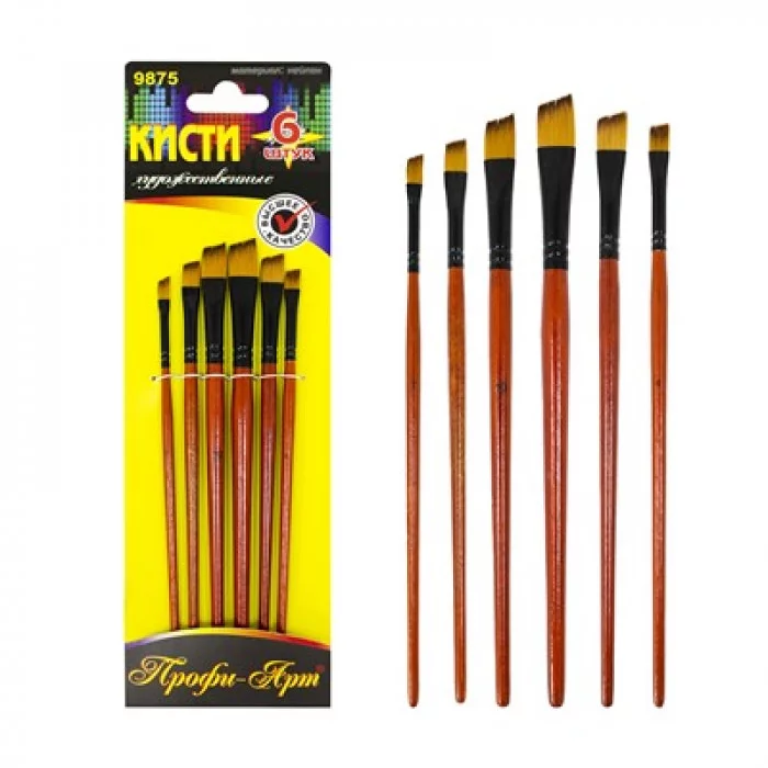Кисти набор, 6шт, нейлон плоская со скосом №2, 4, 6, 8, 10, 12 9875 Профи-Арт 369595