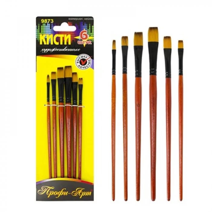 Кисти набор, 6шт, нейлон плоские №2, 4, 6, 8, 10, 12 9873 Профи-Арт 369593