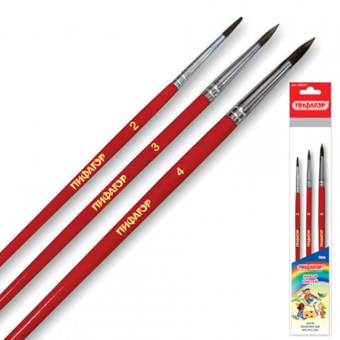 Кисти ПИФАГОР, набор 3 шт. (ПОНИ: круглые № 2, 3, 4), пакет с европодвесом, 200227