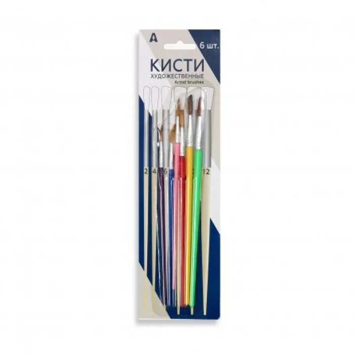 Набор кистей Alingar, 6 шт., коза, №2, №4, №6, №8, №10, №12 круглые, пластиковая ручка, блистер, европодвес AL252B
