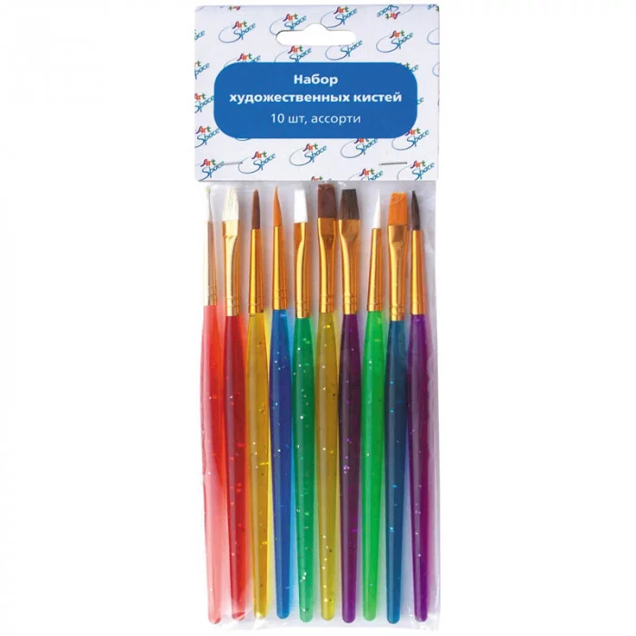 Набор кистей ArtSpace, 10шт., пони, щетина, нейлон, круглые, плоские, пакет, европодвес Спейс 205995
