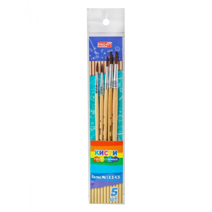 Набор кистей белка №123455шт. деревянная ручка TM"Profit" НК-5556
