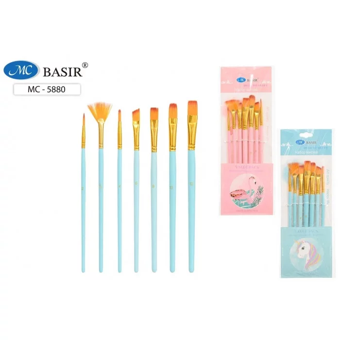 Кисть - набор 7 шт Синтетика №2,3,4,6,8,10,12 круглые+плоские Basir МС-5880