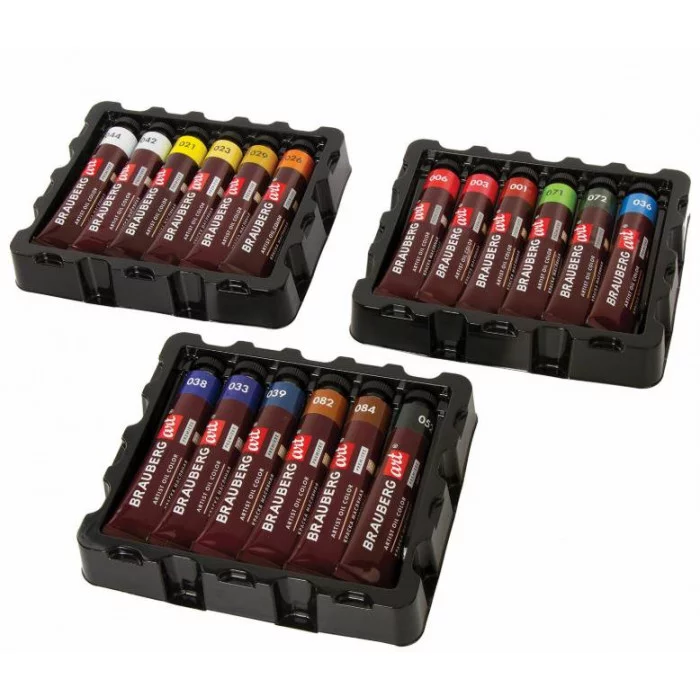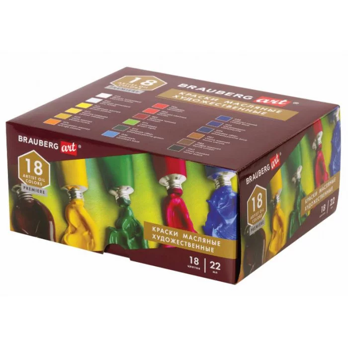 Краски масляные художественные BRAUBERG ART PREMIERE, 18 цв. по 22 мл, в тубах, 191459