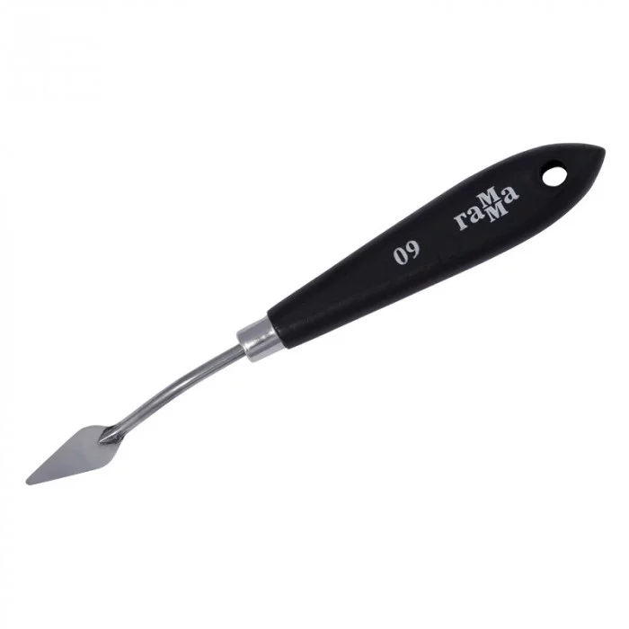 Паяный мастихин из нержавеющей стали с удобной плоской ручкой из натурального бука. Сварное соединение ручки и лезвия дает больший угол наклона мастихина к холсту, снижая вероятность случайного касания и смазывания краски. Форма лезвия — ромб. размер рабочей поверхности мастихина-28мм*11мм