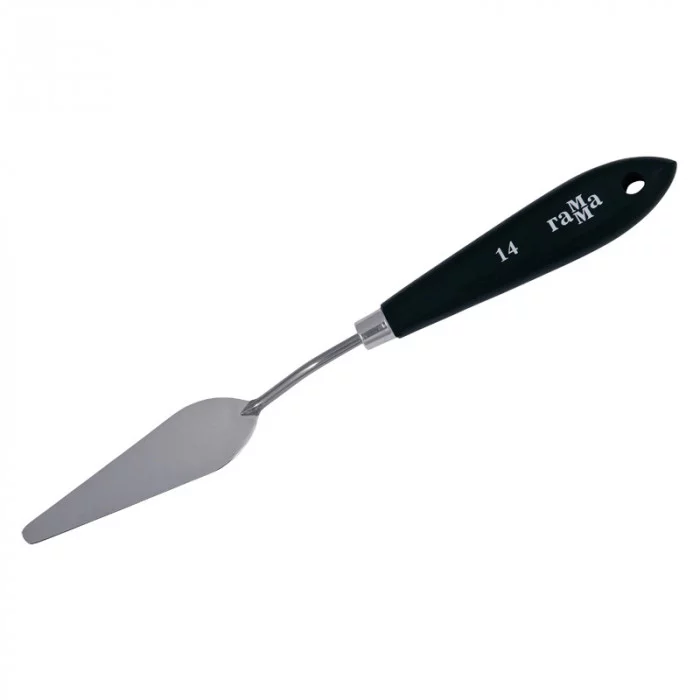 Паяный мастихин из нержавеющей стали с удобной плоской ручкой из натурального бука. Сварное соединение ручки и лезвия дает больший угол наклона мастихина к холсту, снижая вероятность случайного касания и смазывания краски. Форма лезвия — ромб. размер рабочей поверхности мастихина-83мм*23мм