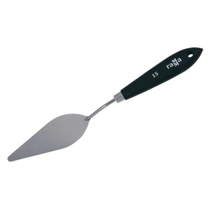 Паяный мастихин из нержавеющей стали с удобной плоской ручкой из натурального бука. Сварное соединение ручки и лезвия дает больший угол наклона мастихина к холсту, снижая вероятность случайного касания и смазывания краски. Форма лезвия — ромб. размер рабочей поверхности мастихина-105мм*32мм