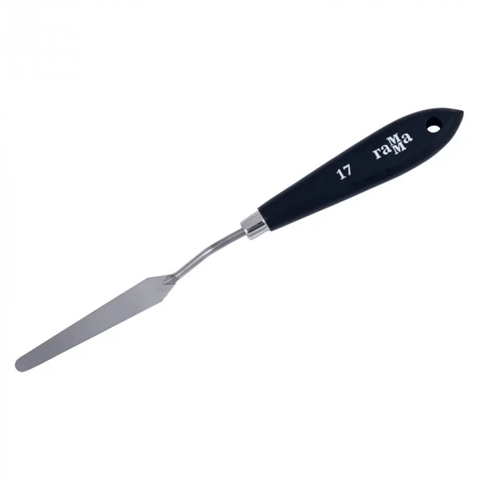 Паяный мастихин из нержавеющей стали с удобной плоской ручкой из натурального бука. Сварное соединение ручки и лезвия дает больший угол наклона мастихина к холсту, снижая вероятность случайного касания и смазывания краски. Форма лезвия — ромб. размер рабочей поверхности мастихина-79мм*12мм