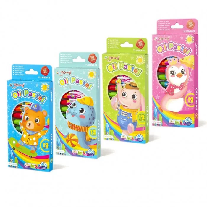 Пастель масляная Yalong, "Зверята" 12 цв. шестигранные, картонная упаковка, европодвес. YL192408-12