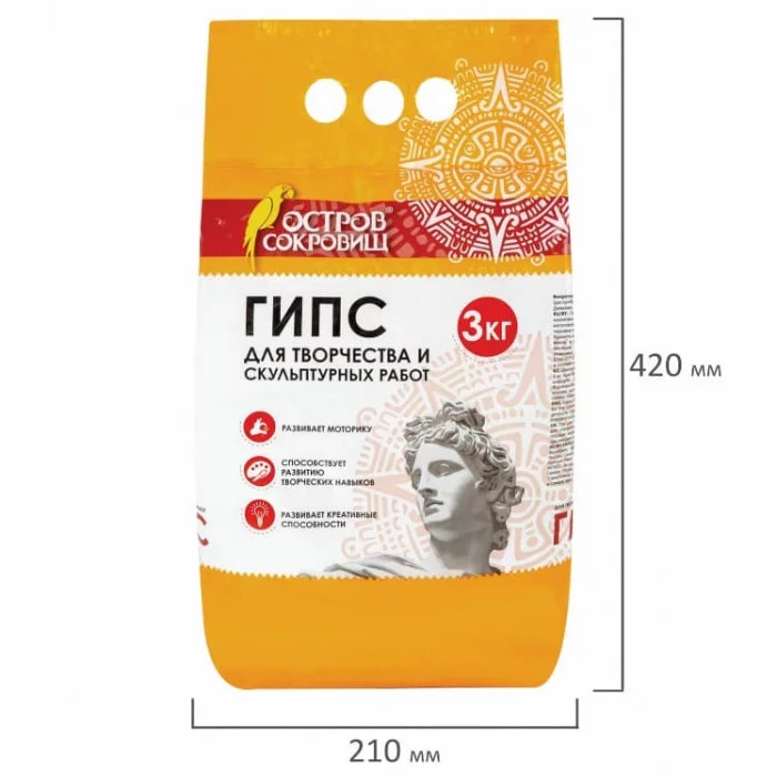 Скульптурный гипс ОСТРОВ СОКРОВИЩ отлично подойдет для изготовления моделей и форм, лепки, скульптурных работ. Способствует развитию мелкой моторики, творческих способностей и пространственного мышления.