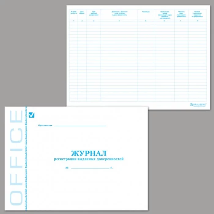 Уценка потертая Книга BRAUBERG "Журнал регистрации выданных доверенностей", 48л, А4 203*285мм Уценка130081